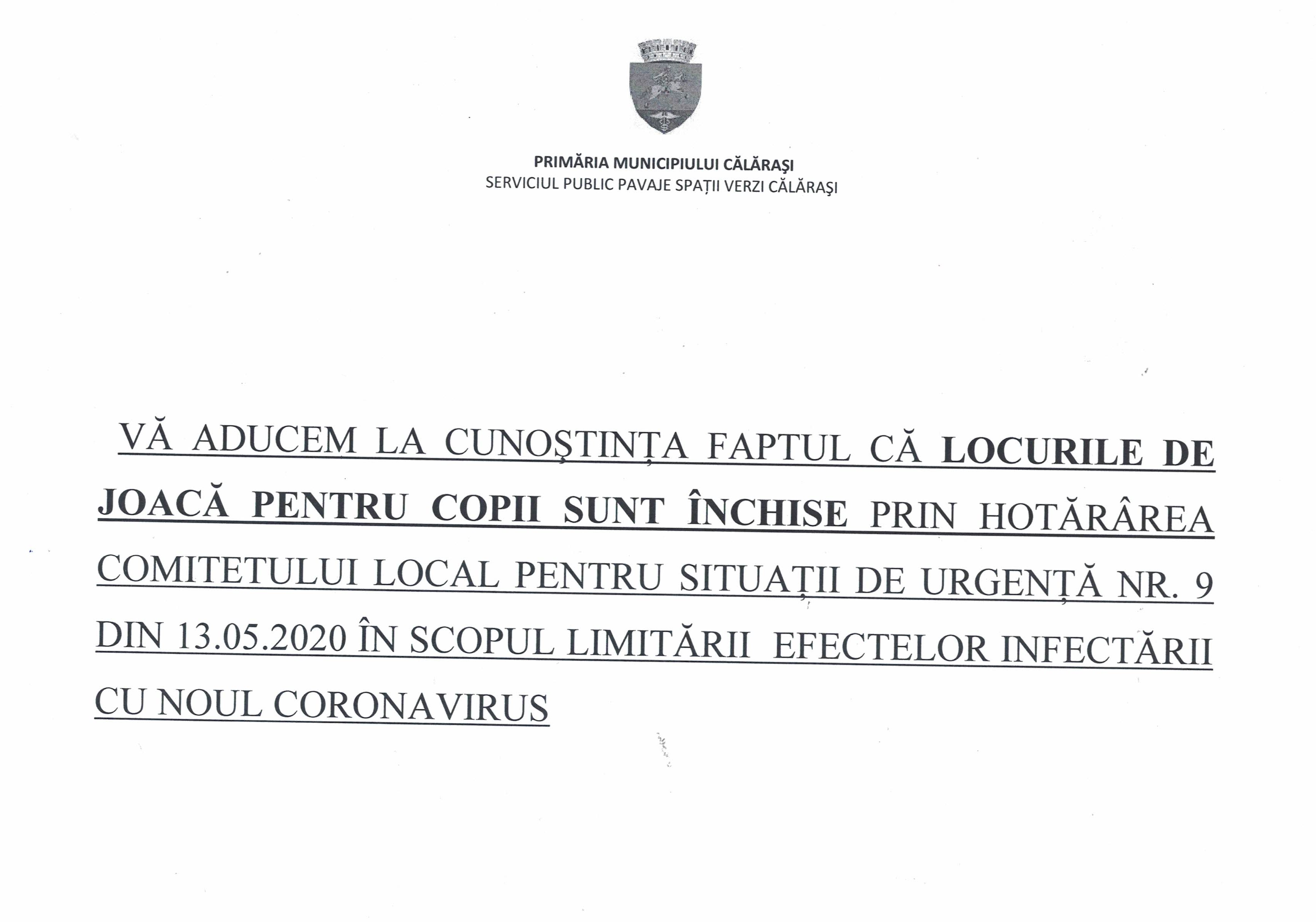Anunt locuri de joaca inchise -2021